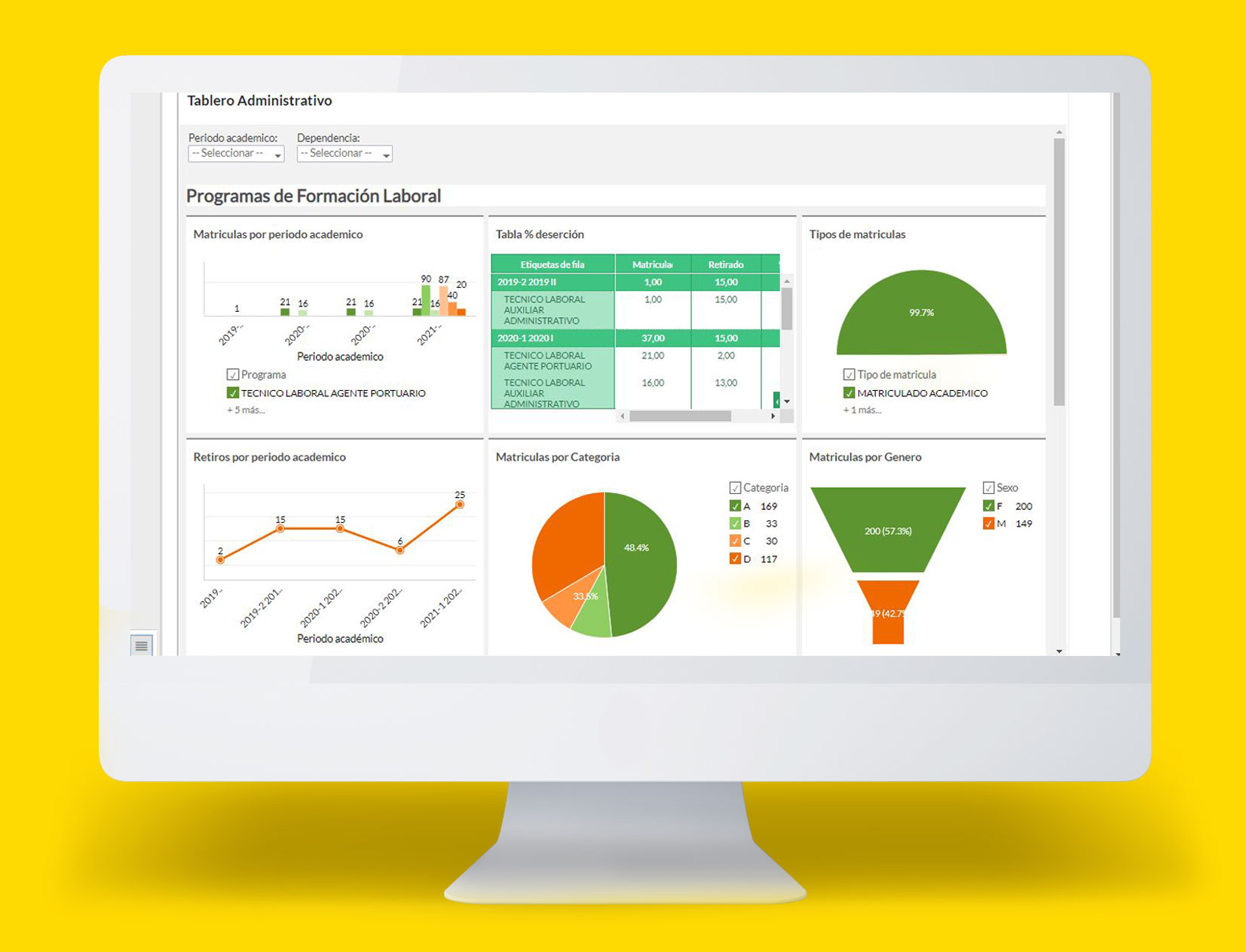Transforme los datos en información, y la información en conocimiento, de forma que pueda optimizar el proceso de toma de decisiones en la institución tanto en el área académica como en el área administrativa. Mejore las capacidades de planeación, ejecución y alineación de la gestión administrativa al monitorear por medio de tablas, gráficos, mapas y otras ayudas visuales innovadoras el desempeño y enfóquese a la mejora continúa ahorrando horas de trabajo.